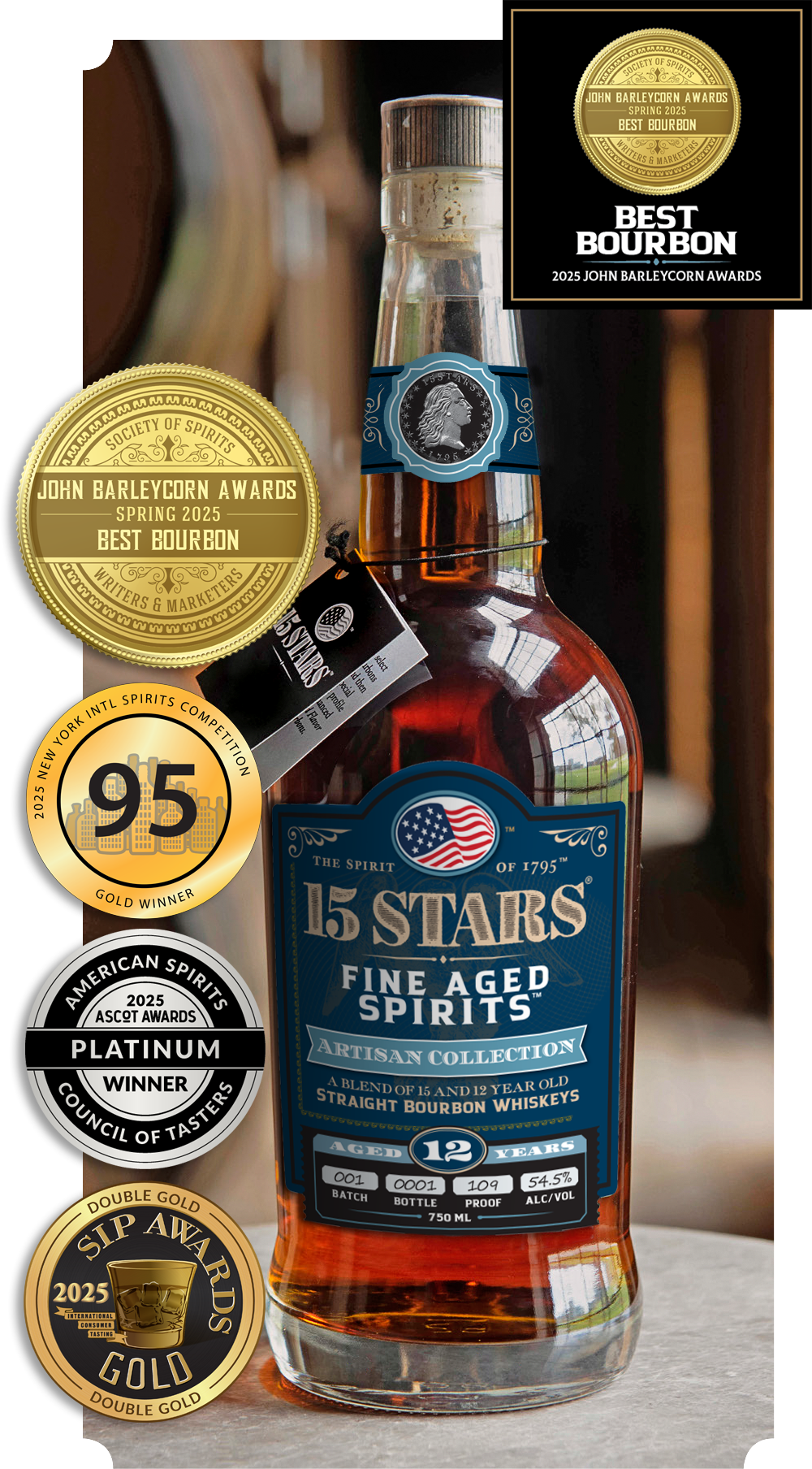 A Blend of Straight Bourbon Whiskeys from KY and IN Aged 15 and 12 Years